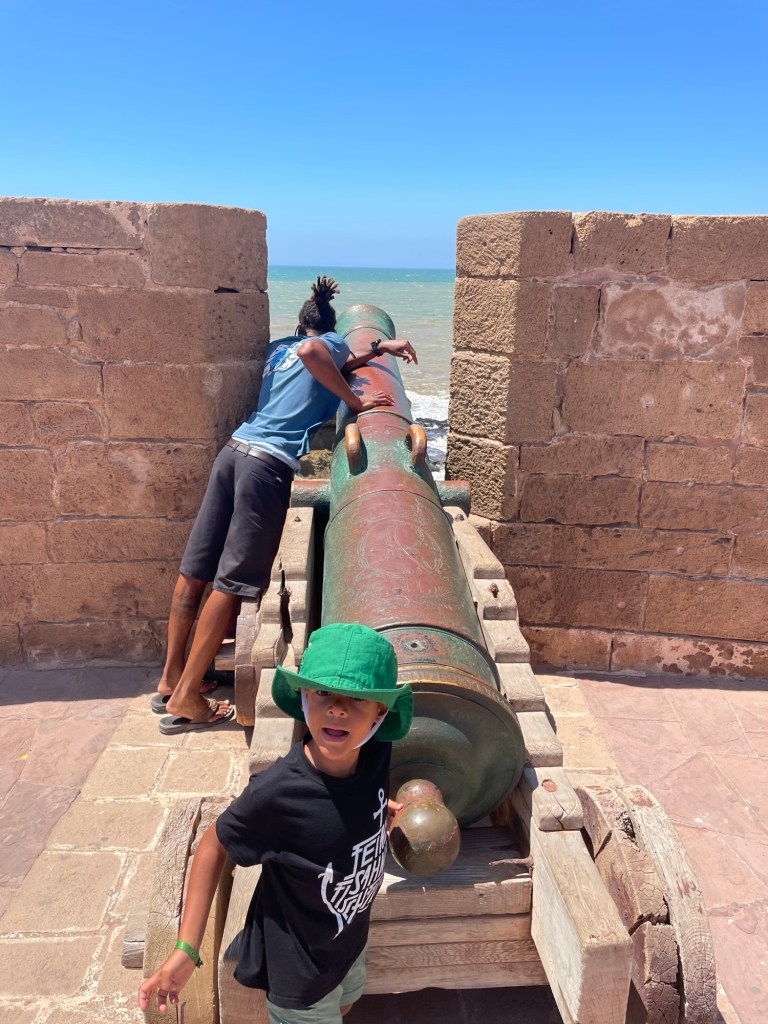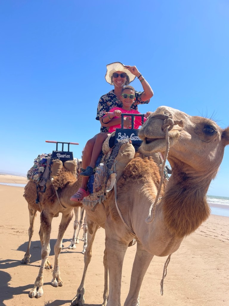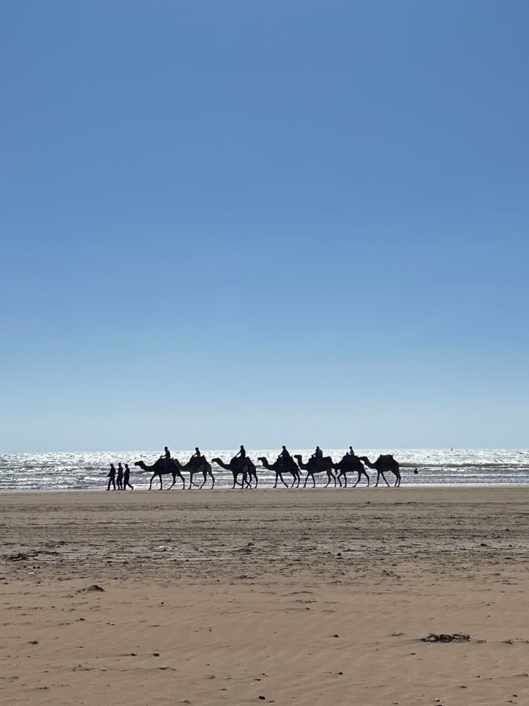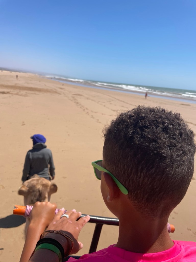 Unser Campingplatz lag etwas außerhalb der Stadt in Sidi Kaouki, und obwohl es an den wenigen Tagen, die wir dort verbrachten, extrem windig war, konnten wir ein paar Tage am breiten Sandstrand genießen. Hier hatten Sol und ich das lustige Erlebnis, auf einem launischen Kamel namens Baba Ganoush zu reiten, und wir gingen an der nahe gelegenen Felsenküste auf Krabbenjagd.