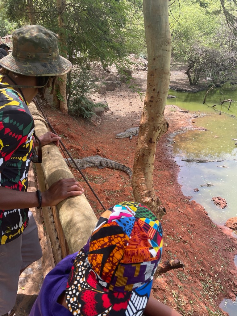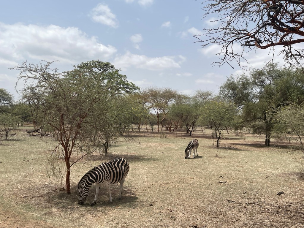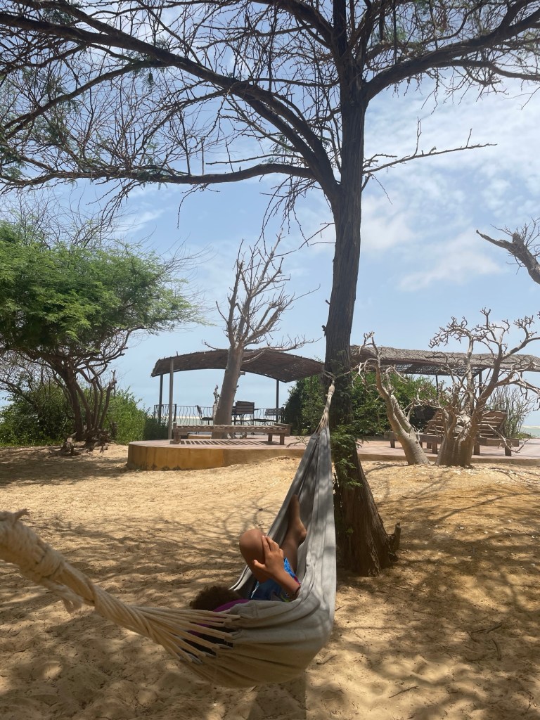 Nachdem wir die Stadt verlassen hatten, fuhren wir zum Reserve de Bandia, einer Art Safaripark mit riesigen, breiten Baobab-BΓ€umen und frei lebenden Tieren. Es war toll, so viele gesund aussehende Tiere herumlaufen zu sehen, eine viel bessere Erfahrung als jeder Zoo. Das GΓ€stehaus, in dem wir an diesem Abend ΓΌbernachteten, war auch wegen des β¦β¦ Pools ein Highlight fΓΌr Sol!