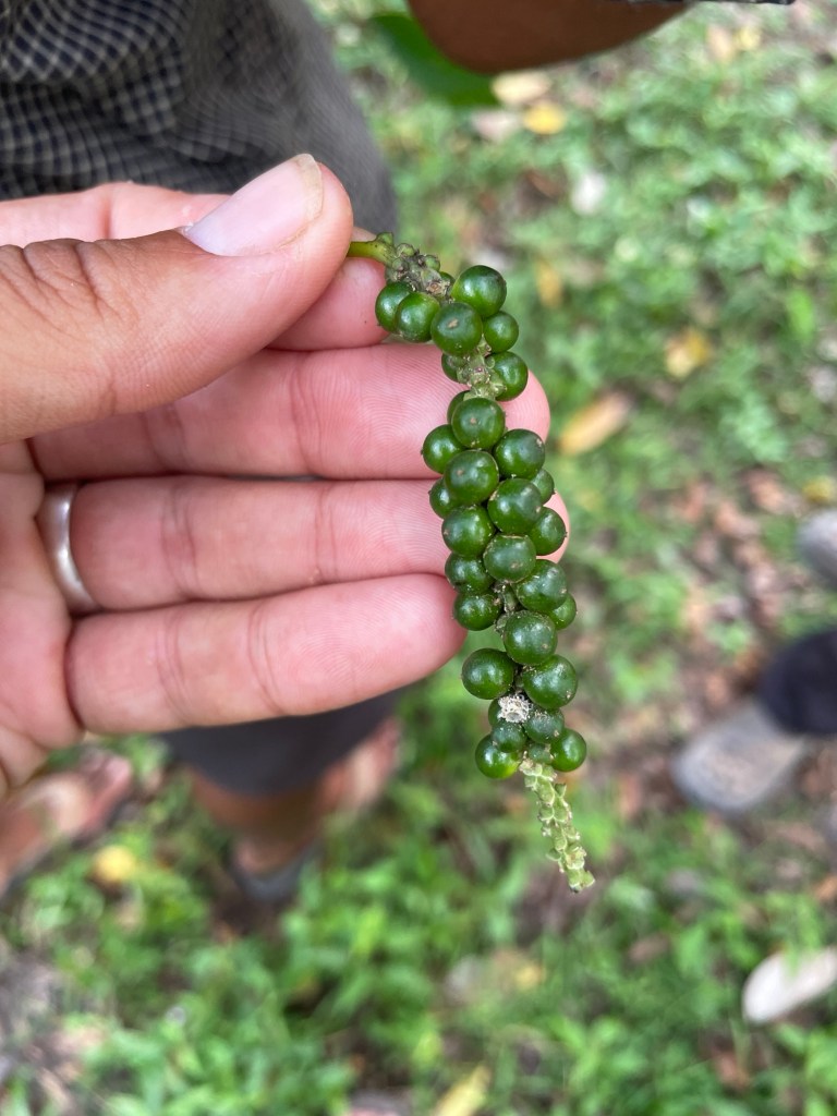 Dann besuchten wir eine Pfefferfarm, wo uns ein Bauer eine Führung über sein Feld gab, auf dem auch Kakaobäume und Ananaspflanzen stehen. Es war sehr aufschlussreich und wir genossen anschließend eine schöne Verkostung.