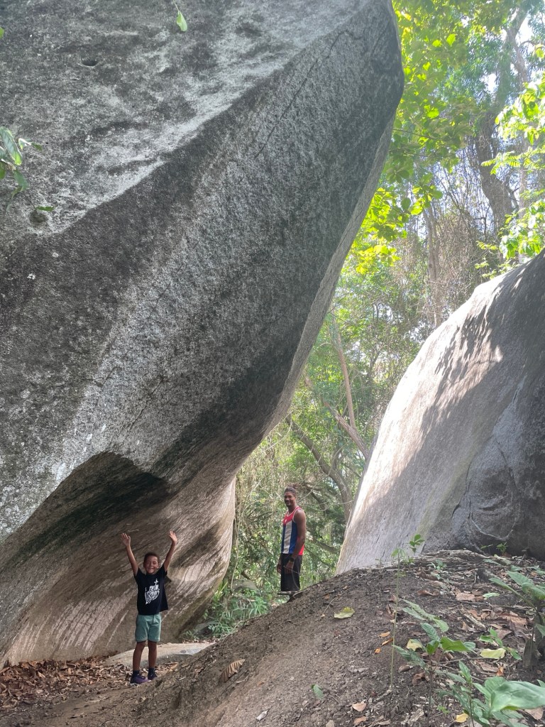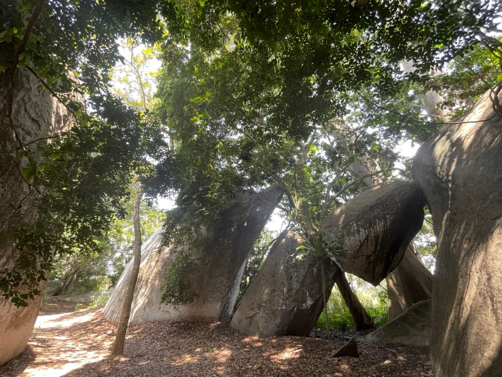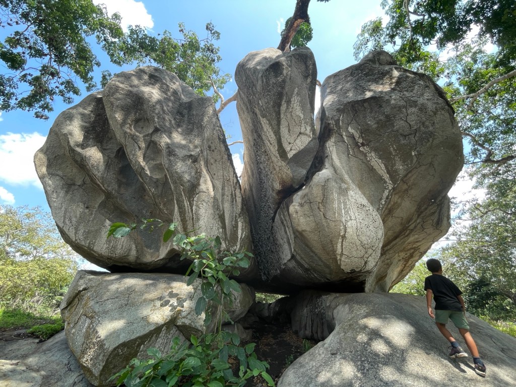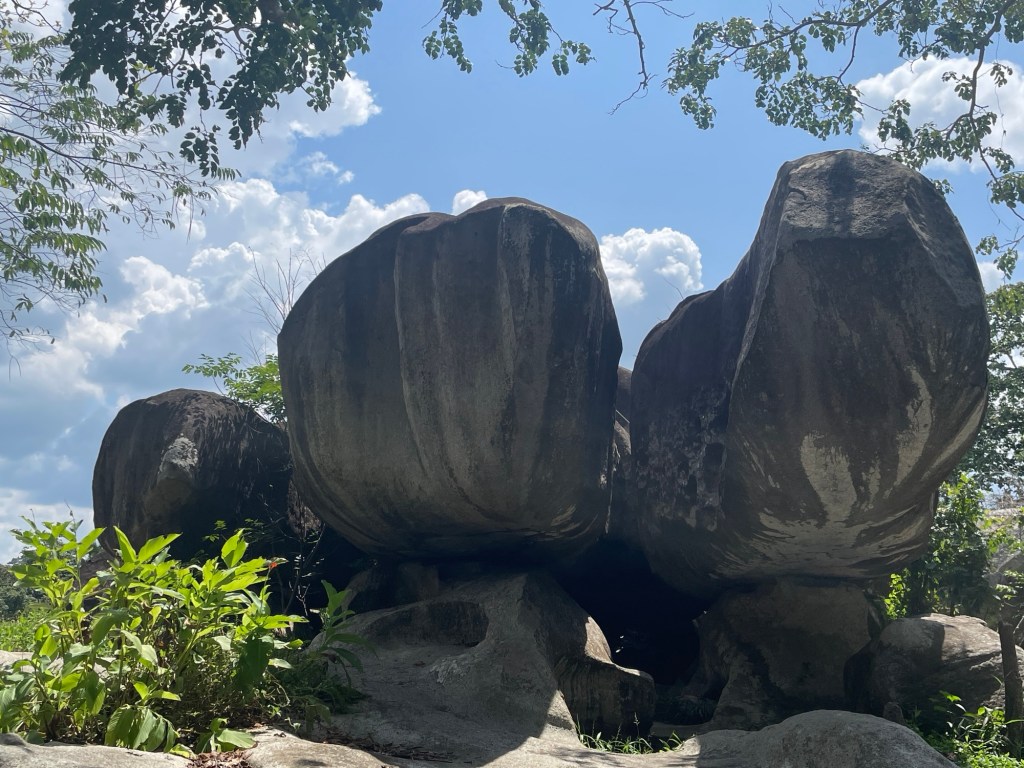 Dann schlugen wir wieder unser Nachtlager zwischen hohen Palmen und neben einem reißenden Fluss auf. Und am nächsten Tag besuchten wir den Parc Archéologique d’Ahouakro, der unerwartet beeindruckend war. Die Felsformationen waren nicht von dieser Welt und einige sahen aus wie Tiere. Wir waren ganz allein und konnten die Felsen berühren und darauf laufen, es war ziemlich verblüffend, wie und wann sie entstanden sein müssen.