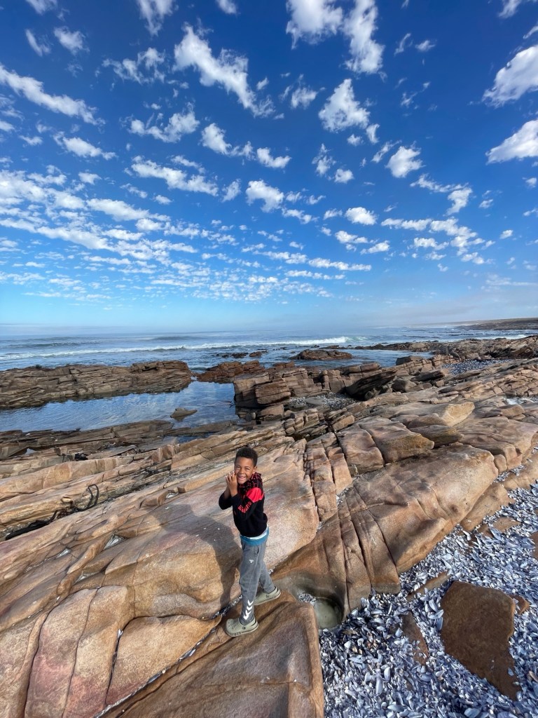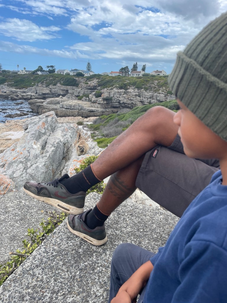 Wir waren drei Nächte lang in ihrem supergemütlichen Gästehaus untergebracht und haben jede Minute davon genossen. Es hat eine Zeit lang sehr stark geregnet, aber das hat uns in der warmen Hütte nichts ausgemacht. Bei trockenem Wetter haben wir eine lange Wanderung auf der nahe gelegenen Three Sisters Route unternommen und sind ziemlich hoch geklettert – die Aussicht über die Bucht von Kleinmond war atemberaubend und wir haben das kühlere Wetter dort oben genossen. Wir machten auch einen Tagesausflug in die nahe gelegene Küstenstadt Hermanus und genossen einen Spaziergang entlang der zerklüfteten, windigen Küste. Unterwegs sahen wir auch viele niedliche Klippschliefer (auch als Hyrax bekannt), die wie große, verschlafene Hamster aussehen. Nachdem wir uns verabschiedet hatten, fuhren wir weiter entlang der Küste und machten einen obligatorischen Fotostopp am Kap Agulhas, dem südlichsten Punkt des afrikanischen Kontinents. Dies wäre ein weiterer Wendepunkt unserer Reise: Von hier aus geht es zurück nach Norden in Richtung Kenia, wo die letzte Etappe unseres Abenteuers auf uns wartet!