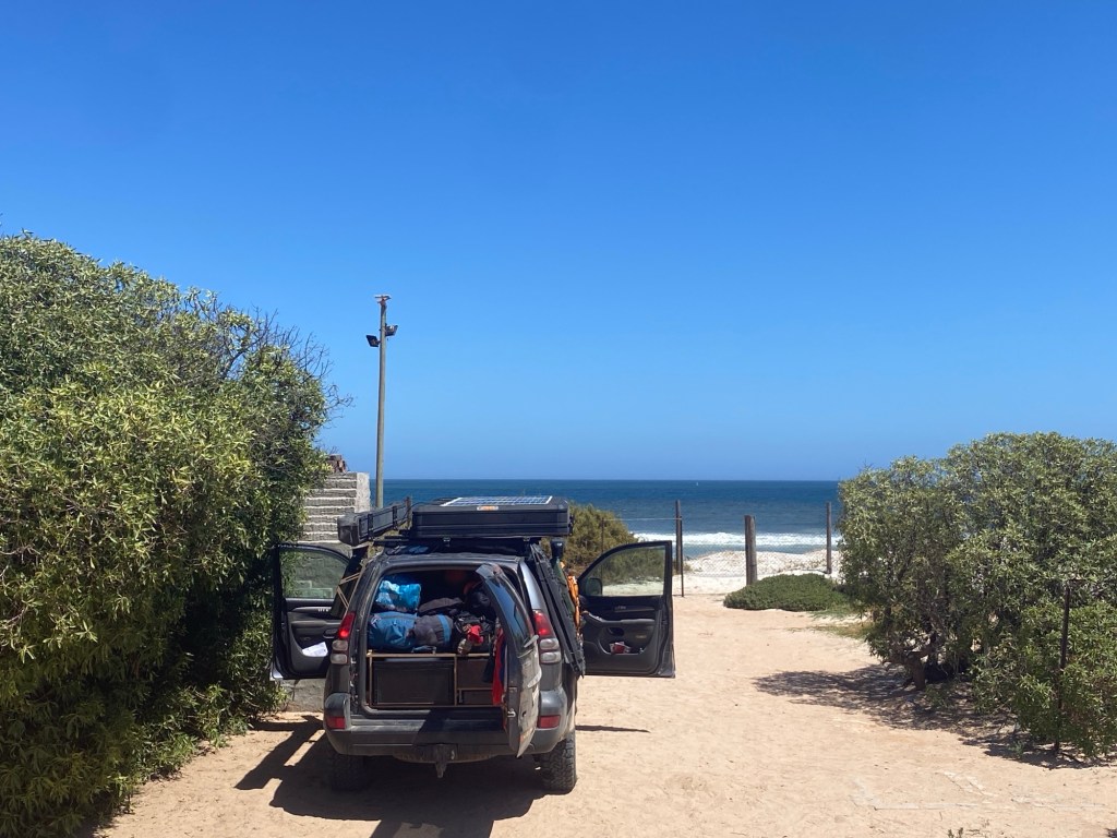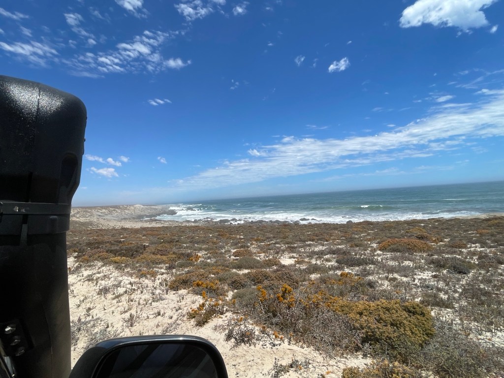 Nach einer weiteren sehr einfachen Grenzüberquerung erreichten wir das südlichste Land des Kontinents und unserer Reise: Südafrika. Die Straßen waren weiterhin unbefestigt und teilweise gingen es über Wellblechpisten, aber befahrbar, und wir verbrachten unsere erste Nacht in diesem Land auf einem sehr windigen Campingplatz, der von einer freundlichen Dame namens Veronica betrieben wurde. Sie und ihr süßer Hund hießen uns herzlich willkommen, und nach einer erholsamen Nacht setzten wir unsere Fahrt nach Süden durch den Namaqua-Nationalpark fort, der direkt an der Küste entlang verläuft. Nachdem wir an unzähligen Robbenkolonien und Gruppen neugieriger Strauße vorbeigefahren waren, schlugen wir unser Lager auf, um den Sonnenuntergang an einem wilden Ort direkt neben den tosenden Wellen zu genießen.