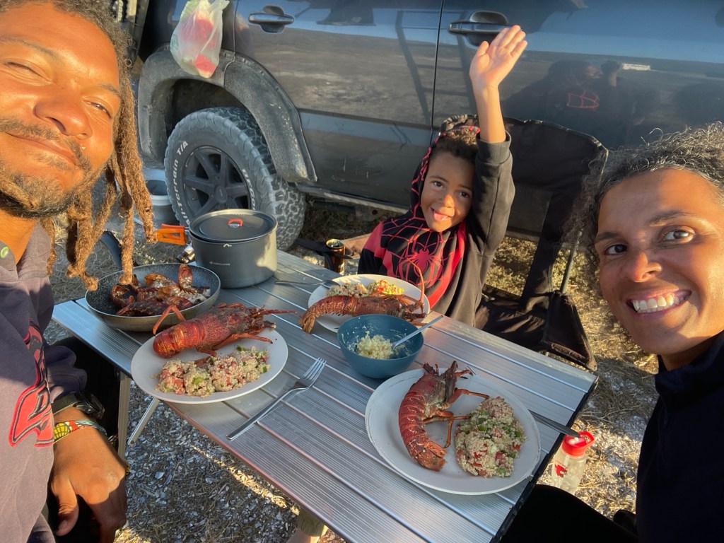 Am nächsten Morgen fuhren wir weiter nach Elandsbaai, einem der windigsten Orte, an denen wir während unserer gesamten Reise gewesen waren. Die zahlreichen Wind- und Kitesurfer schienen die windigen Bedingungen zu lieben, und nach einem Spaziergang am Strand fanden wir einen geschützten Platz, um unser Zelt aufzubauen. Am nächsten Tag zogen wir weiter und machten diesmal Halt in einem malerischen Fischerdorf namens Paternoster, wo wir von einigen lokalen Fischern frische Hummer ergattern konnten. Damit war das Abendessen gesichert, und meine Güte, war das LEKKER!