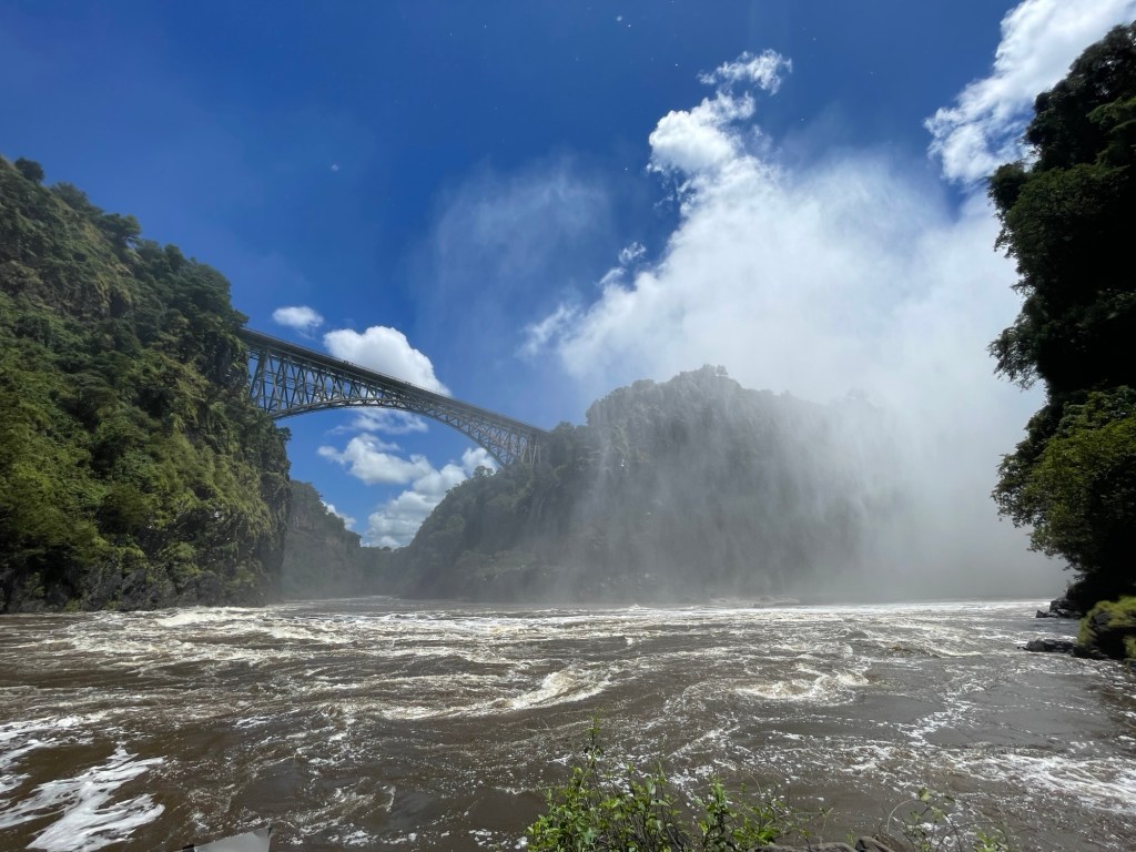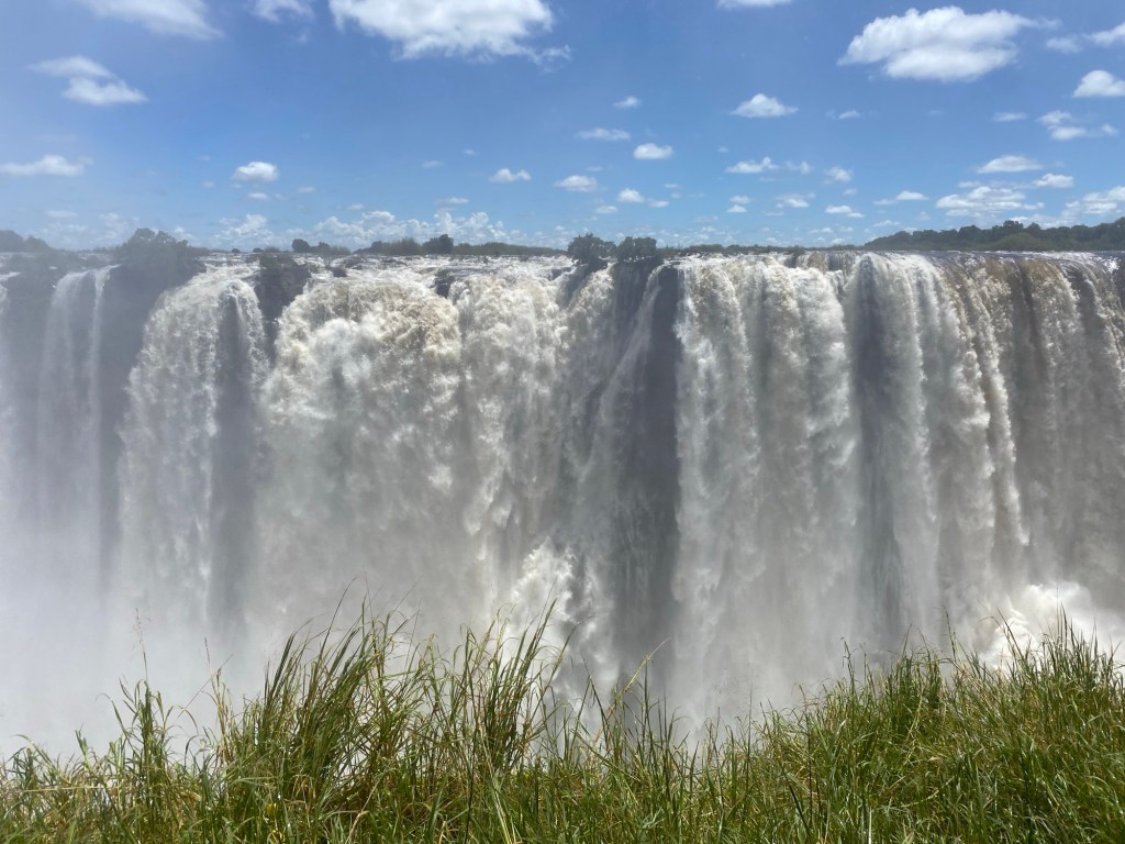 Obwohl wir die gigantischen Victoriafälle von der sambischen Grenze aus besucht haben (wir verbrachten zwei Nächte in Sambia, um sie uns anzusehen), werde ich sie in diesen Beitrag aufnehmen, der sich hauptsächlich mit Simbabwe befasst (nachdem wir die Wasserfälle gesehen hatten, fuhren wir über die Grenze nach Simbabwe).