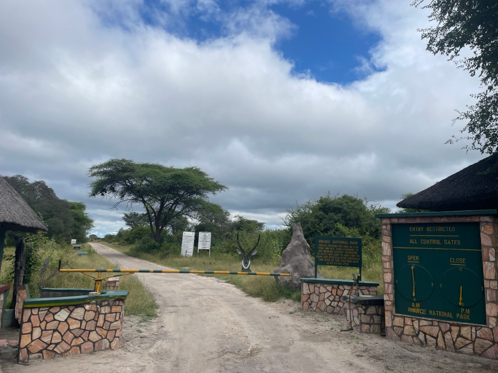 Am nächsten Morgen warfen wir einen letzten Blick auf die Wasserfälle, als wir über die alte Brücke fuhren, die Sambia und Simbabwe trennt. Der Grenzübertritt dauerte hier etwas länger als erwartet, da es einige unerwartete Probleme mit der Zollabfertigung für das Auto gab. Die Grenzbeamten waren jedoch freundlich, und nach etwa zwei Stunden konnten wir weiterfahren. Unser erster Halt in Simbabwe war der Hwange-Nationalpark. Da dieser nur eine kurze Autofahrt von der Grenze entfernt lag, hatten wir genug Zeit, uns dort über Parkgebühren und Öffnungszeiten zu erkundigen. Wir beschlossen dann, einen schönen, brandneuen (aussehenden) Campingplatz in der Nähe zu suchen und am nächsten Morgen früh zurückzukommen, um den Park zu betreten und zwei volle Tage darin zu genießen.