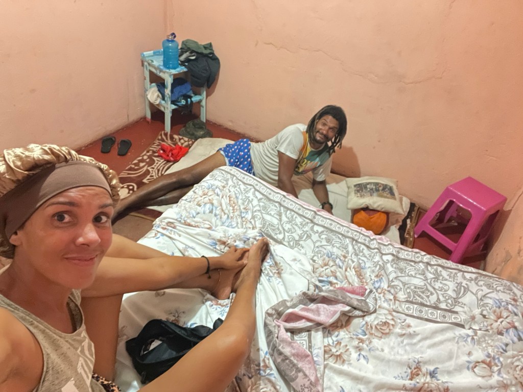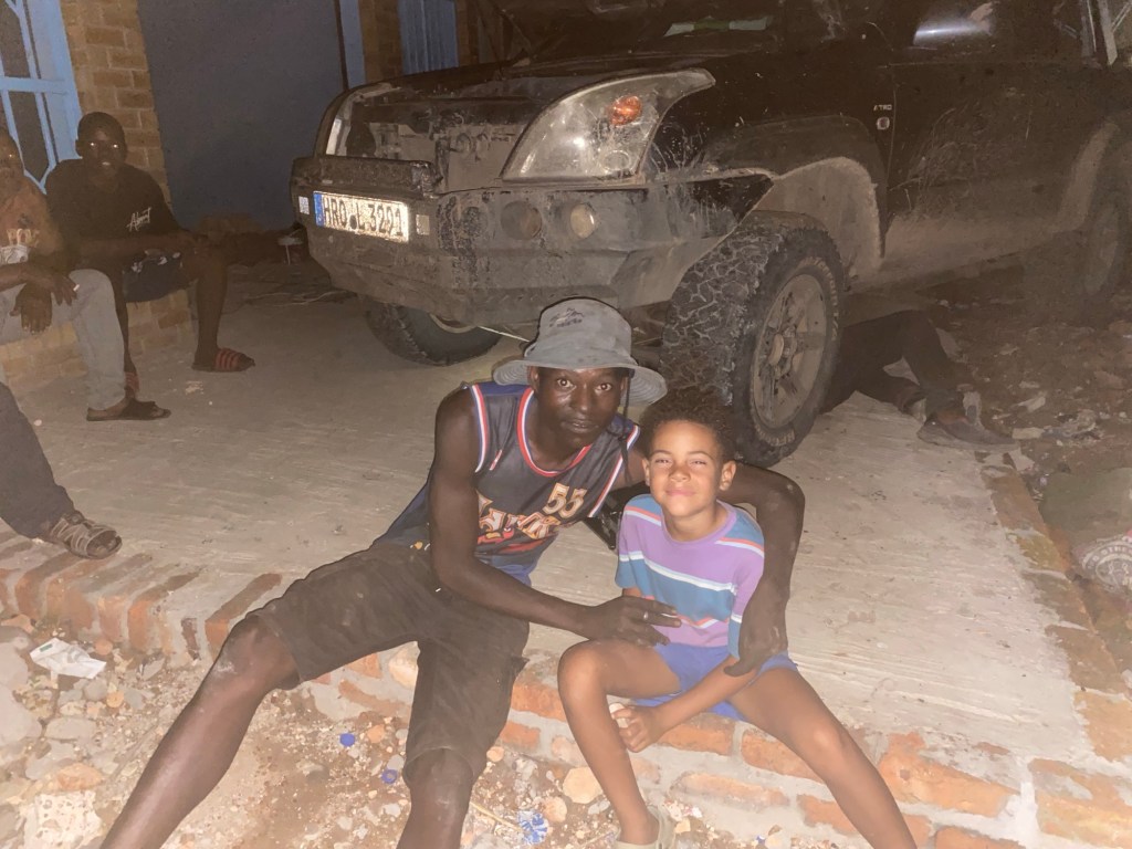 Die Sonne ging gerade unter, als Marian mit den Ersatzteilen zurückkam, doch das örtliche Mechanikerteam arbeitete im Dunkeln weiter, um die Lager auszutauschen und das gebrochene Auspuffrohr wieder zusammenzuschweißen. Dann öffnete sich der Himmel und es begann in Strömen zu regnen, also buchten wir uns für die Nacht in das einzige Gästehaus der Stadt ein (dieser Ort war eine absolute Absteige, die 20 Dollar pro Nacht kostete, in einem schimmeligen Zimmer ohne Toilette, ohne Wasser, ohne Dusche, ohne Waschbecken/Wasserhähne, und ich hoffe, dass ich diesen Ort aus meinem Gedächtnis löschen kann).